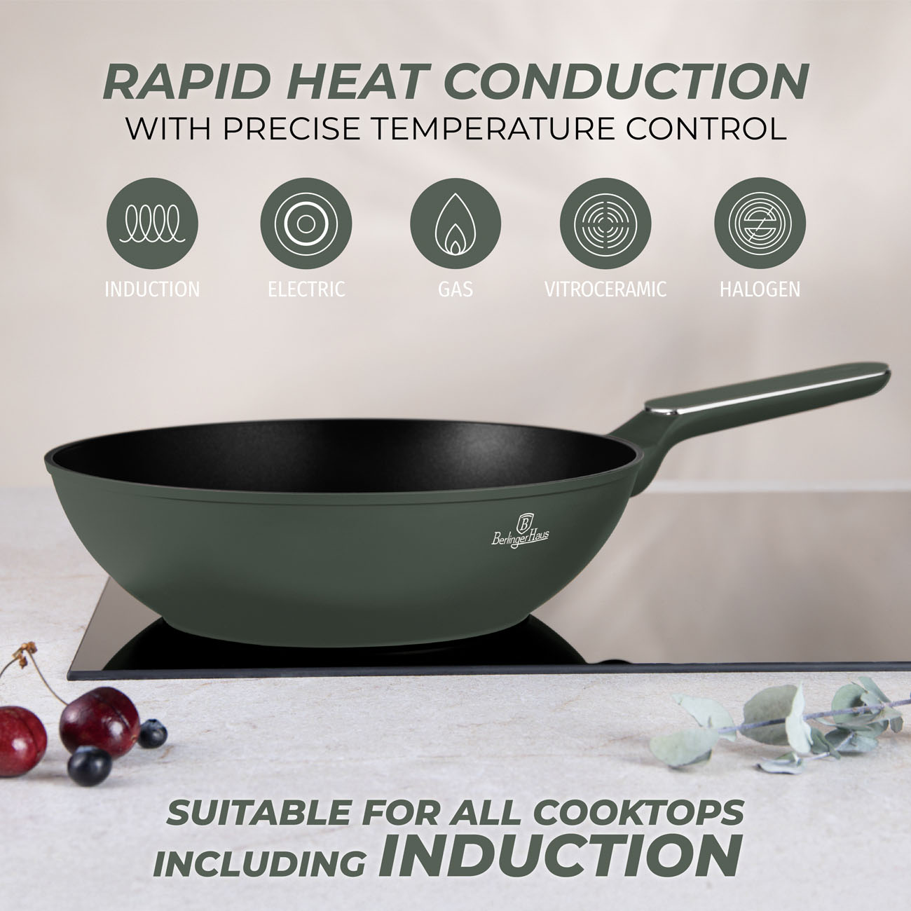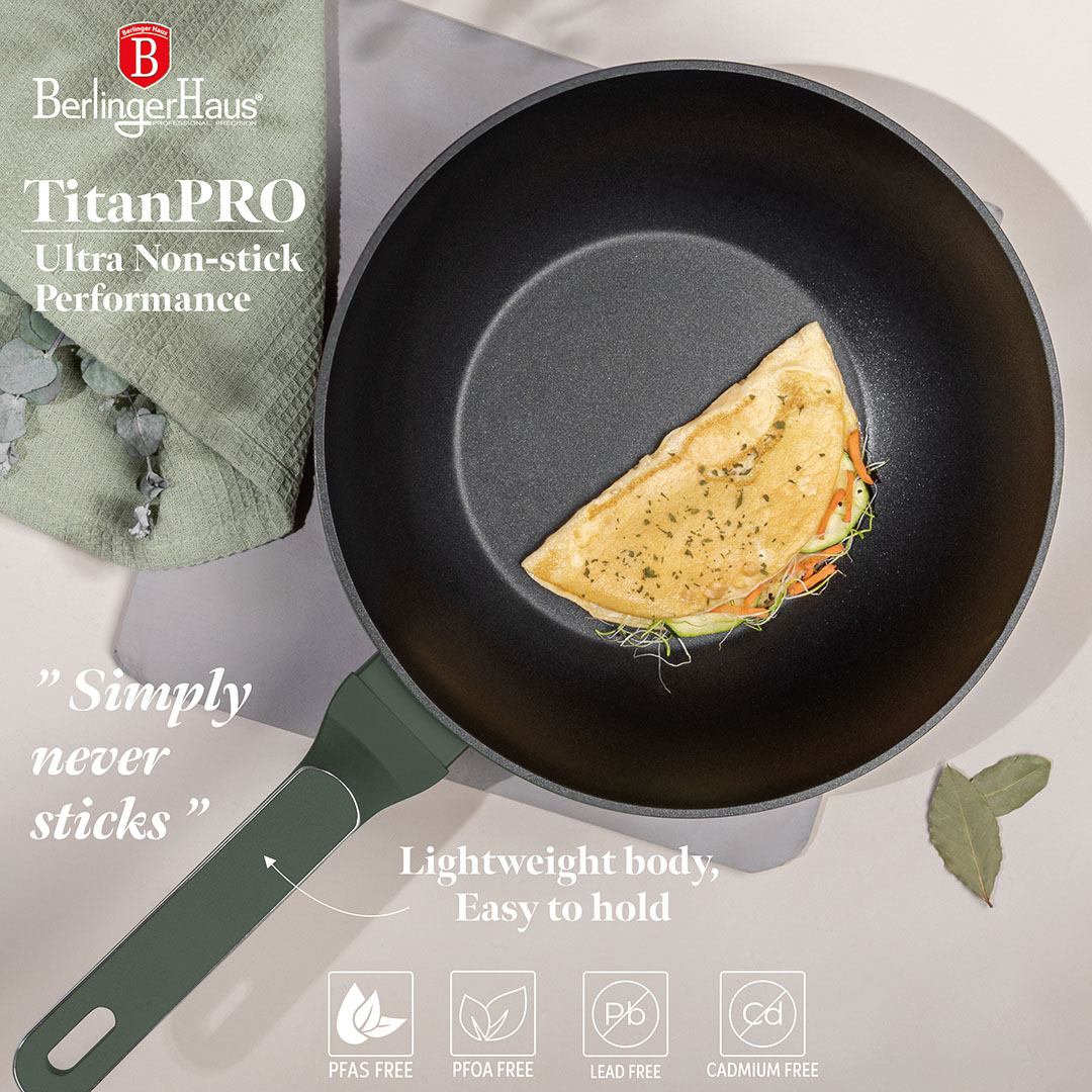 Unesite dašak elegancije i profesionalizma u svoju kuhinju uz Berlinger Haus BH8159 Matte Green wok tiganj sa poklopcem.
