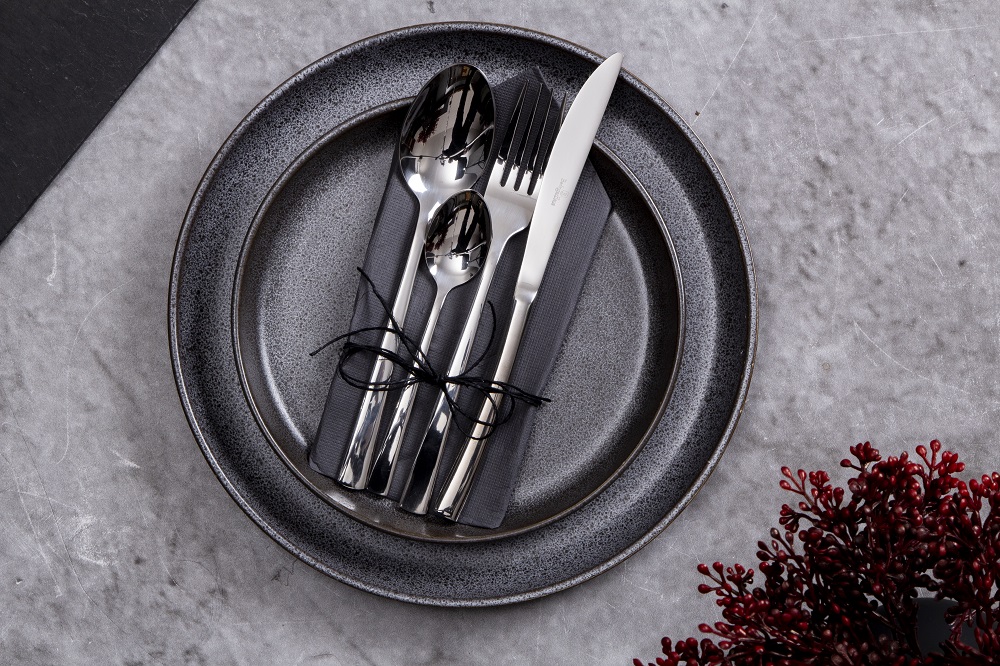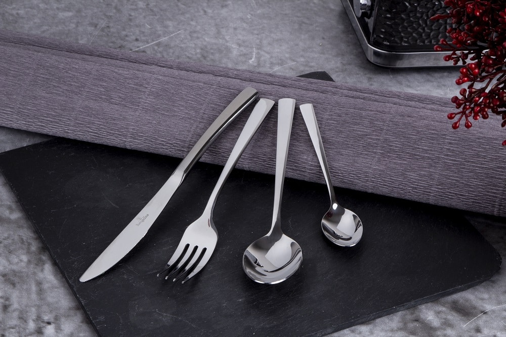 Neprevaziđeni kvalitet i dizajn izrađen od premium nerđajućeg čelika. Sjajni završetak ne samo da dodaje dodir glamura vašem stolu, već takođe označava visok kvalitet materijala koji se koristi, garantujući dugotrajnost i otpornost na habanje.